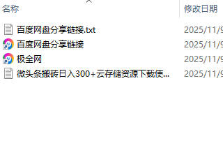 【极全网】微头条搬砖日入300+云存储资源下载目录1个子文件夹0个文件4个