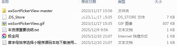 【极全网】首字母排序选择小程序源码本地下载目录1个子文件夹1个文件5个