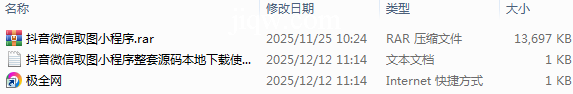 【极全网】抖音微信取图小程序整套源码本地下载目录1个子文件夹0个文件3个