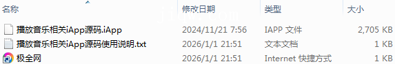 【极全网】播放音乐相关iApp源码目录1个子文件夹0个文件3个