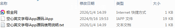 【极全网】空心英文字母iApp源码目录1个子文件夹0个文件3个