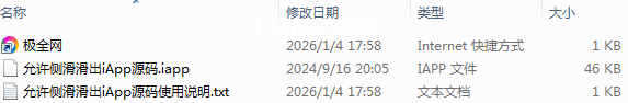 【极全网】允许侧滑滑出iApp源码目录1个子文件夹0个文件3个