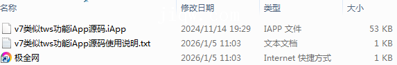 【极全网】v7类似tws功能iApp源码目录1个子文件夹0个文件3个