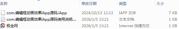 【极全网】com.编辑框动画效果iApp源码目录1个子文件夹0个文件3个