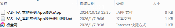 【极全网】FAS-小A_本地签到iApp源码目录1个子文件夹0个文件3个