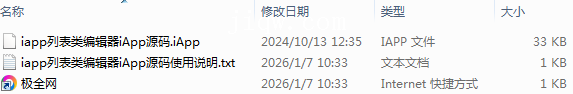 【极全网】iapp列表类编辑器iApp源码目录1个子文件夹0个文件3个