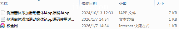 【极全网】侧滑窗体添加滑动窗体iApp源码目录1个子文件夹0个文件3个