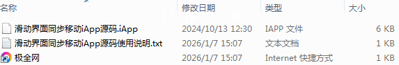 【极全网】滑动界面同步移动iApp源码目录1个子文件夹0个文件3个