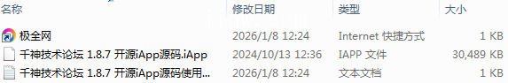 【极全网】千神技术论坛 1.8.7 开源iApp源码目录1个子文件夹0个文件3个