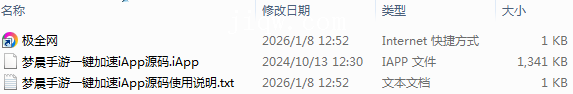 【极全网】梦晨手游一键加速iApp源码目录1个子文件夹0个文件3个