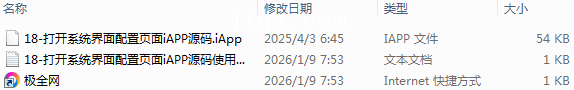 【极全网】18-打开系统界面配置页面iAPP源码目录1个子文件夹0个文件3个