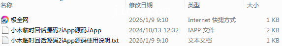 【极全网】小木临时回话源码2iApp源码目录1个子文件夹0个文件3个