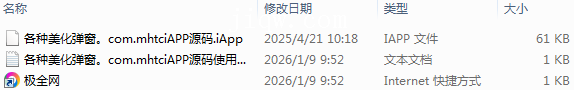 【极全网】各种美化弹窗。com.mhtciAPP源码目录1个子文件夹0个文件3个