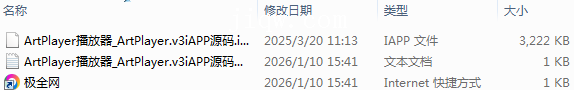 【极全网】ArtPlayer播放器_ArtPlayer.v3iAPP源码目录1个子文件夹0个文件3个