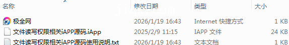 【极全网】文件读写权限相关iAPP源码目录1个子文件夹0个文件3个
