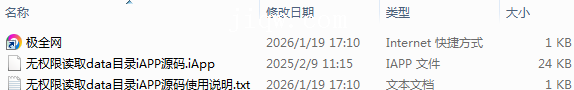 【极全网】无权限读取data目录iAPP源码目录1个子文件夹0个文件3个
