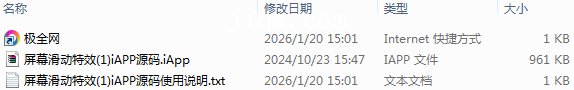 【极全网】屏幕滑动特效(1)iAPP源码目录1个子文件夹0个文件3个