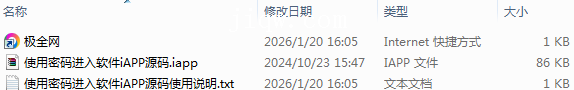 【极全网】使用密码进入软件iAPP源码目录1个子文件夹0个文件3个