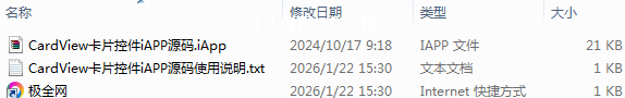 【极全网】CardView卡片控件iAPP源码目录1个子文件夹0个文件3个