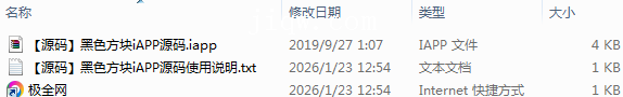 【极全网】【源码】黑色方块iAPP源码目录1个子文件夹0个文件3个