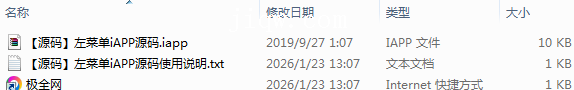 【极全网】【源码】左菜单iAPP源码目录1个子文件夹0个文件3个
