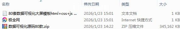 【极全网】80套数据可视化大屏模板html+css+js 这套是网页带源码带动态效果目录1个子文件夹0个文件3个