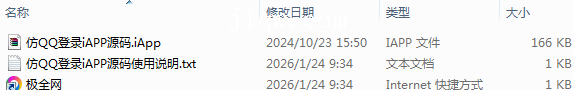 【极全网】仿QQ登录iAPP源码目录1个子文件夹0个文件3个