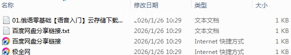 【极全网】01.俄语零基础【语音入门】云存储下载目录1个子文件夹0个文件4个