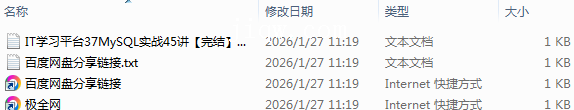 【极全网】IT学习平台37MySQL实战45讲【完结】目录1个子文件夹0个文件4个