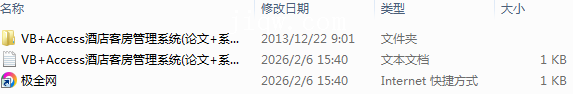 【极全网】VB+Access酒店客房管理系统(论文+系统+开题报告+摘要+任务书)-本地下载目录1个子文件夹1个文件2个