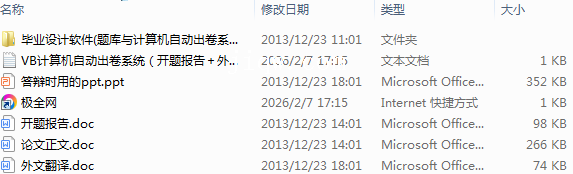 【极全网】VB计算机自动出卷系统(开题报告+外文翻译+源程序+可执行程序+论文正文+答辩ppt)-本地下载目录1个子文件夹1个文件6个