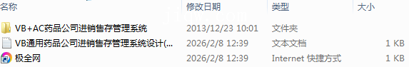 【极全网】VB通用药品公司进销售存管理系统设计(源代码+系统)-本地下载目录1个子文件夹1个文件2个