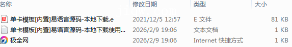 【极全网】单卡模板[内置]易语言源码-本地下载目录1个子文件夹0个文件3个