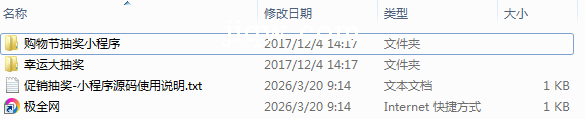 极全网】促销抽奖-小程序源码目录1个子文件夹2个文件2个