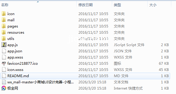 极全网】wx_mall-master小商城UI设计完善-小程序源码目录1个子文件夹5个文件8个