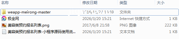 极全网】美容类预约报名列表-小程序源码目录1个子文件夹1个文件3个