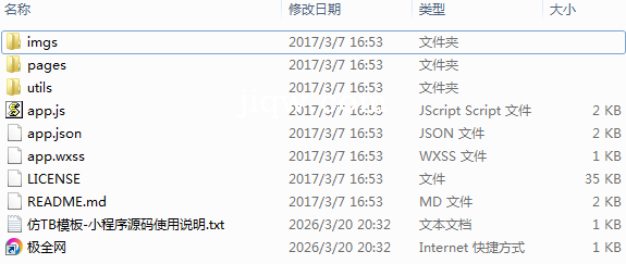 极全网】仿TB模板-小程序源码目录1个子文件夹3个文件7个