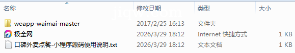 极全网】口碑外卖点餐-小程序源码目录1个子文件夹1个文件2个