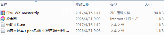 极全网】语音日记本;php后端-小程序源码目录1个子文件夹0个文件4个