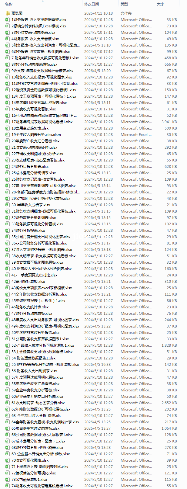 极全网】74套财务分析表格-图表目录1个子文件夹1个文件76个