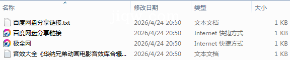 【极全网】音效大全《华纳兄弟动画电影音效库合辑》目录1个子文件夹0个文件4个
