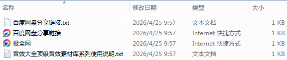【极全网】音效大全顶级音效素材库系列目录1个子文件夹0个文件4个