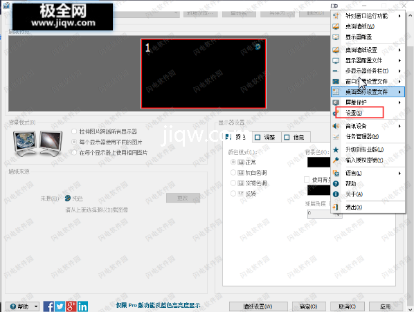 桌面墙纸:打开桌面墙纸配置窗口。 监视器配置:打开“监视器配置”窗口,以允许您修改监视器布局,分辨率和配置文件。 桌面墙纸设置:显示用于控制桌面墙纸设置的子菜单。 显示器配置文件:显示允许您切换显示器配置文件的子菜单。 多监视器任务栏:显示用于控制多监视器任务栏设置的子菜单。对于每个任务栏设置(开始按钮位置,自动隐藏等),右键单击您想修改的任务栏。 桌面图标:显示允许保存,加载和管理桌面图标配置文件的子菜单。 屏幕保护程序:显示用于控制屏幕保护程序设置的子菜单。 设置:打开DisplayFusion设置窗口。 音频设备:此菜单允许您在系统上的不同声音设备之间切换。 任务管理器:打开Windows任务管理器。 输入许可证密钥:如果您使用的是免费版本的DisplayFusion,则此菜单选项将允许您输入DisplayFusionPro许可证密钥。 升级到专业版:如果您使用的是免费版本的DisplayFusion,则此菜单选项将带您进入DisplayFusion免费版与专业版比较页面。 语言:允许您快速更改DisplayFusion的界面语言。您可以从DisplayFusionLanguages页面下载更多语言。 关于:在DisplayFusion设置窗口中打开关于选项卡。 退出:关闭DisplayFusion。