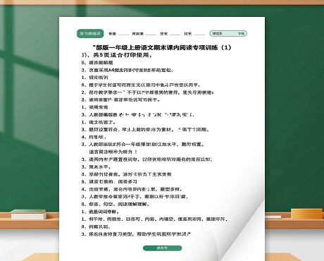 人教部编版一年级上册语文期末课内阅读专项训练(1)(供打印 5页)-极全网