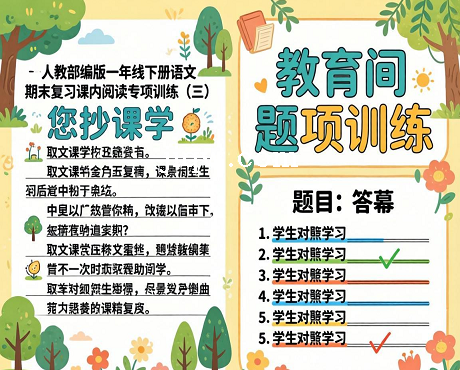 标题:人教部编版一年级下册语文期末复习课内阅读专项训练(三)(含答案)