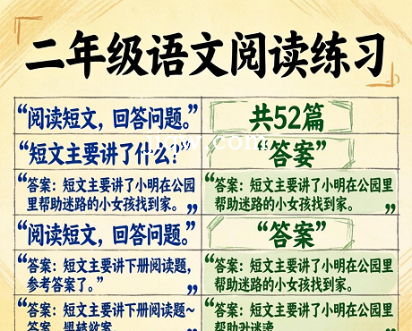 极全网】小学二年级语文下册阅读题及参考答案(52篇)
