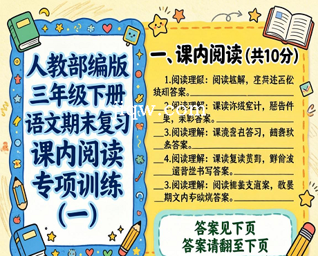 标题:人教部编版三年级下册语文期末复习课内阅读专项训练(一)(含答案)