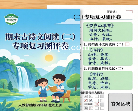 标题:人教部编版四年级语文上册 期末古诗文阅读二专项复习测评卷 (含答案)