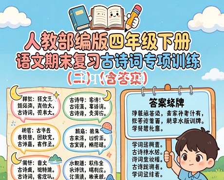 标题:人教部编版四年级下册语文期末复习古诗词专项训练(二)(含答案)