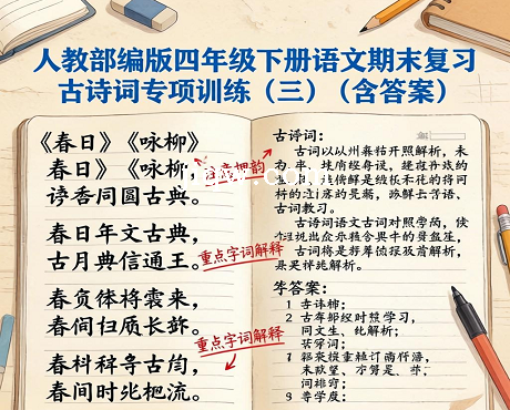 标题:人教部编版四年级下册语文期末复习古诗词专项训练(三)(含答案)